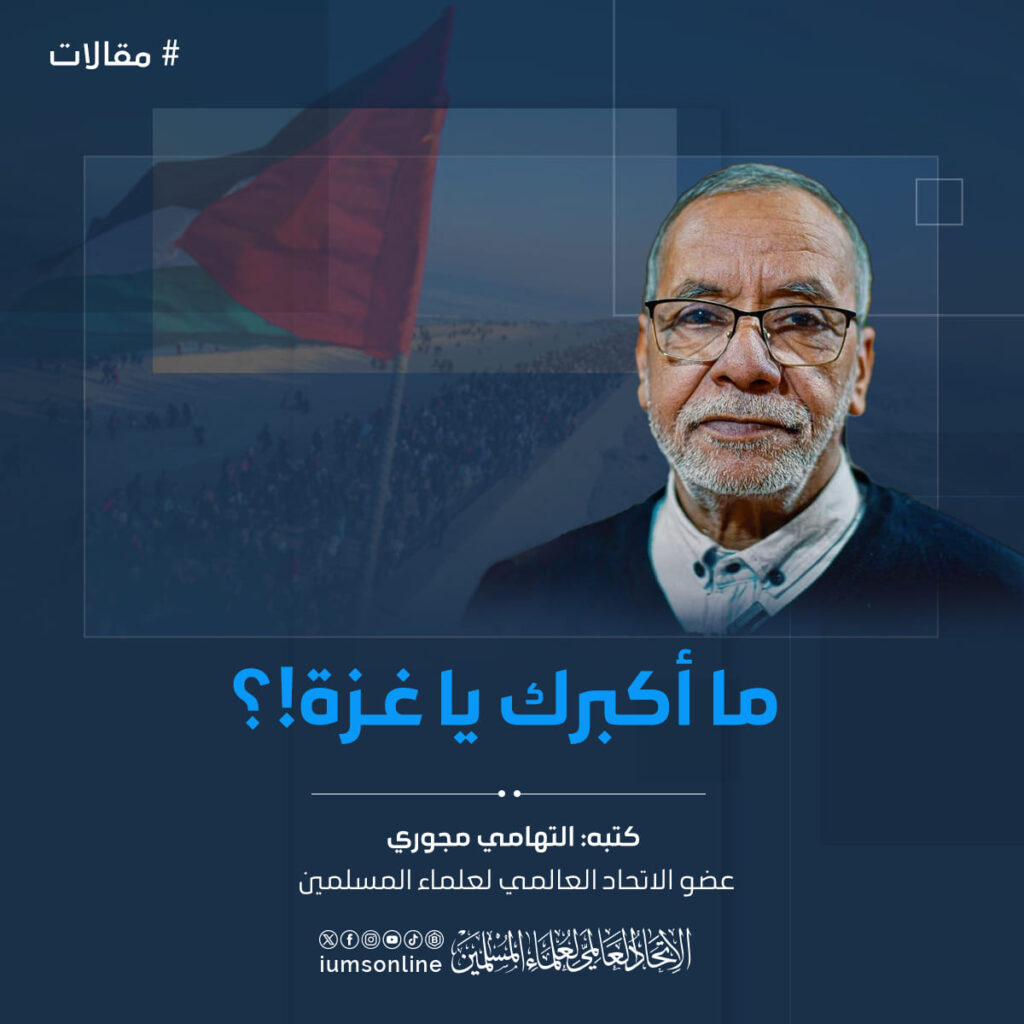 ما أكبرك يا غزة!؟بقلم: التهامي مجوريعضو الاتحاد العالمي لعلماء المسلمين إي والله ما أكبر غزة هذه الأيام؛ بل ومنذ السابع من أكتوبر 2023، يوم قررت الشروع في تسجيل بطولاتها التي…