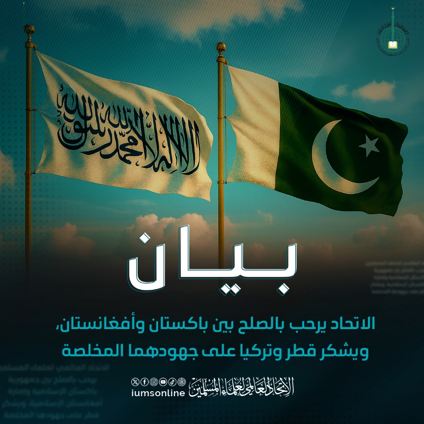 الاتحاد العالمي لعلماء المسلمين يرحب بالصلح بين جمهورية باكستان الإسلامية وإمارة أفغانستان الإسلامية، ويشكر قطر وتركيا على جهودهما المخلصة