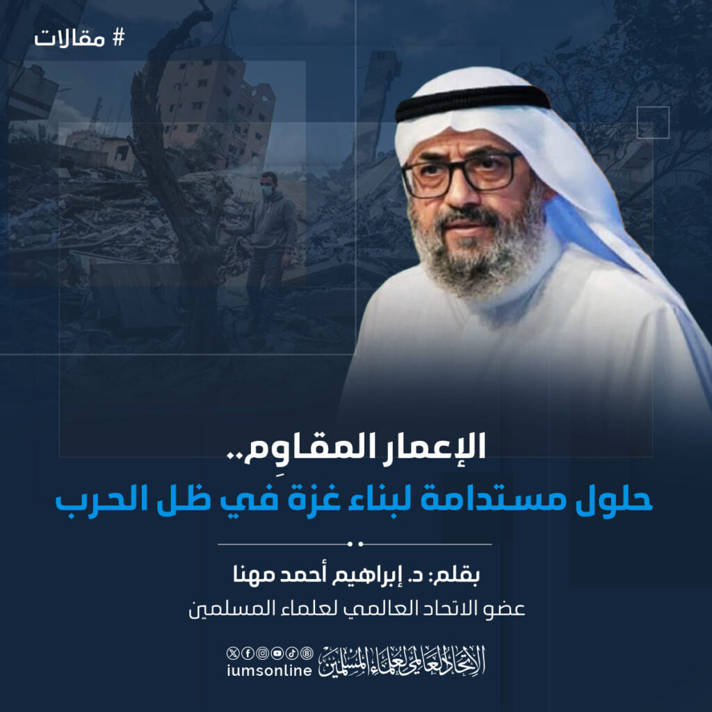 الإعمار المقاوِم.. حلول مستدامة لبناء غزة في ظل الحرب د. إبراهيم أحمد مهناعضو الاتحاد العالمي لعلماء المسلمين تعرض قطاع غزة لسلسلة من الحروب العدوانية من الكيان الصهيوني، بداية من عامي…