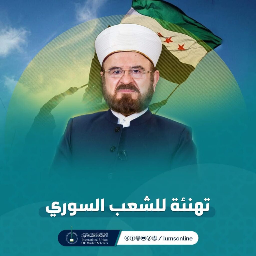 القره داغي يهنئ السوريين بالذكرى الأولى للنصر والتحرير