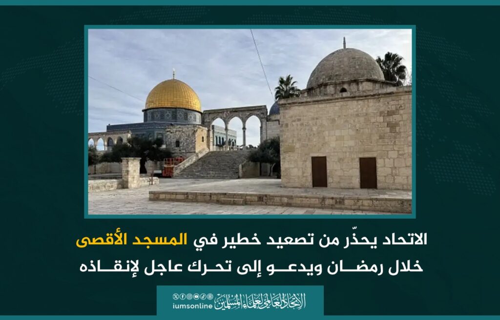 الاتحاد العالمي لعلماء المسلمين يحذّر من تصعيد خطير في المسجد الأقصى خلال رمضان ويدعو إلى تحرك عاجل لإنقاذه
