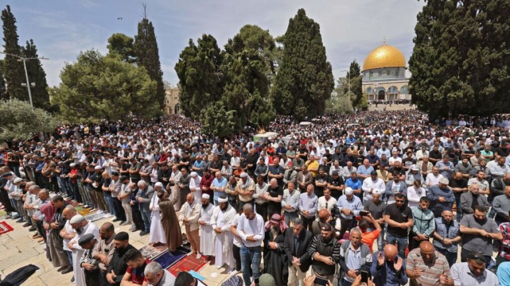 Thousands of Palestinians pray at Al-Aqsa Mosque amid Israeli attacks