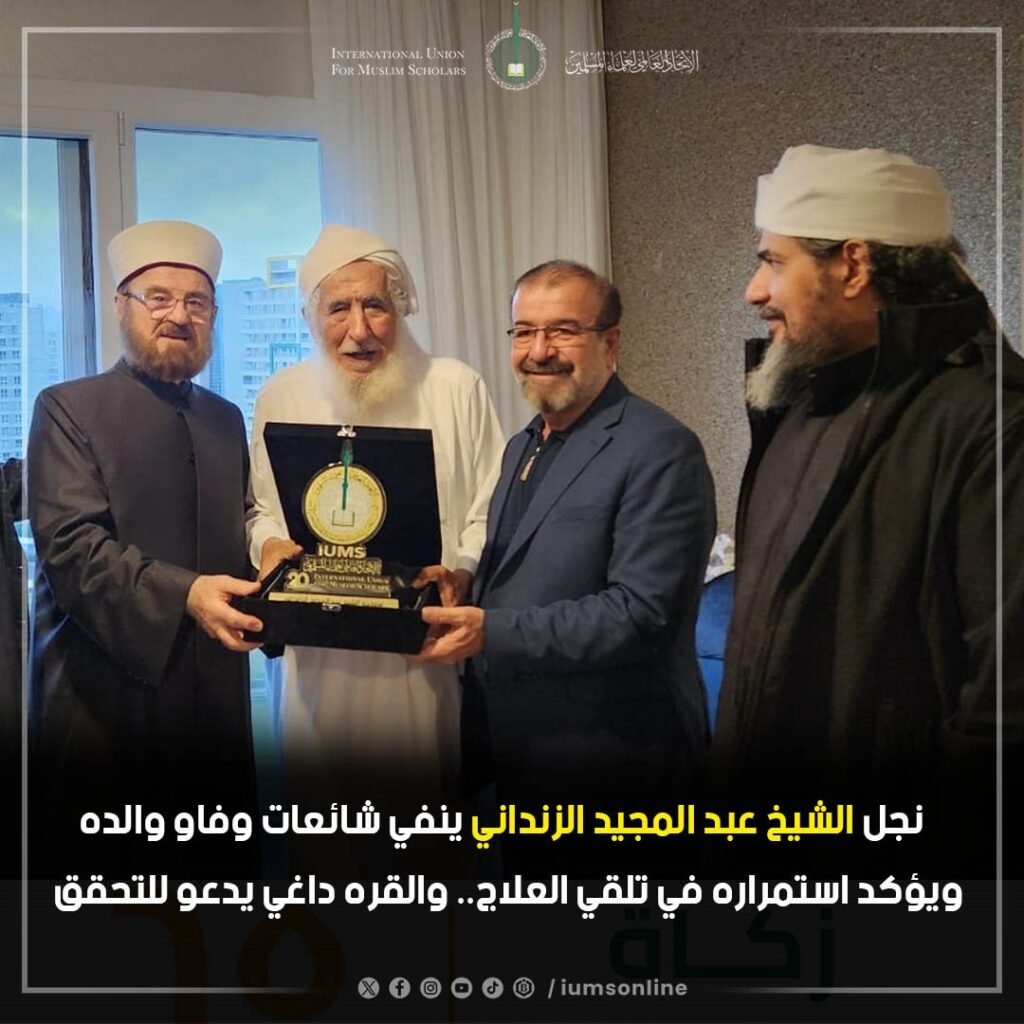 Professor of Comparative Jurisprudence at Iman University, Sheikh Mohammed – son of the distinguished Sheikh Abdul Majeed al-Zindani, denied the news circulated on social media and media outlets regarding the death of his father – may God protect them.