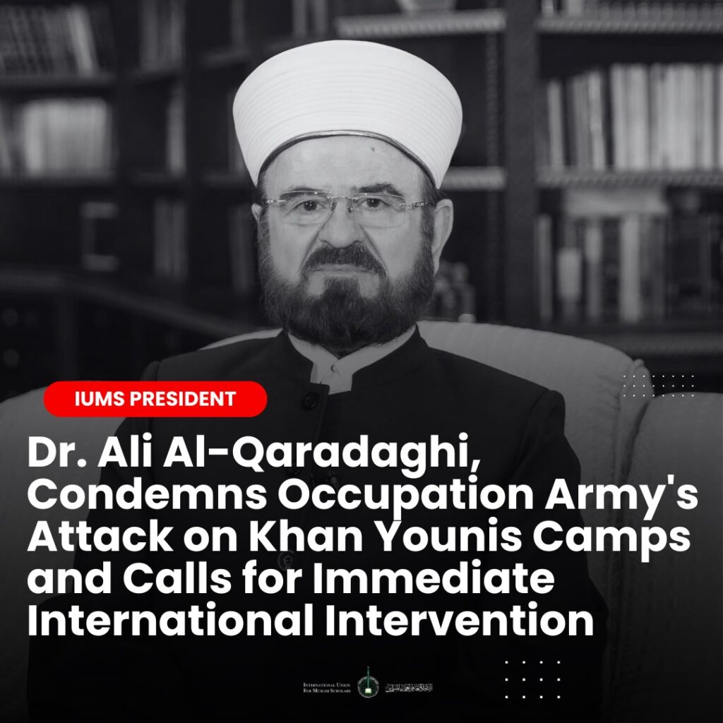 Dr. Ali Al-Qaradaghi, Condemns Occupation Army’s Attack on Khan Younis Camps and Calls for Immediate International Intervention