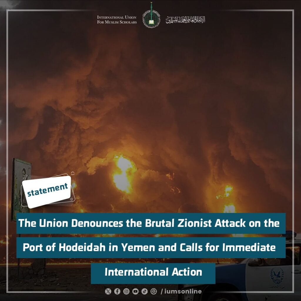The International Union of Muslim Scholars expresses its deep concern and strong condemnation of the recent attack launched by the Zionist entity on Yemen and its unarmed people, by bombing the Port of Hodeidah with missiles, resulting in the death of many innocent civilians.