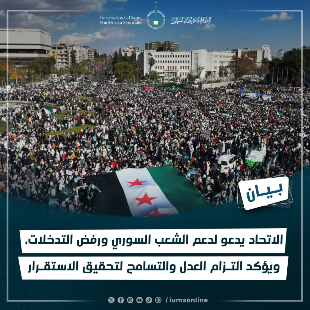 The International Union of Muslim Scholars Calls for Supporting the Syrian People, Rejecting Interventions, and Upholding Justice and Tolerance to Achieve Stability (Statement)The International Union of Muslim Scholars reaffirms its…