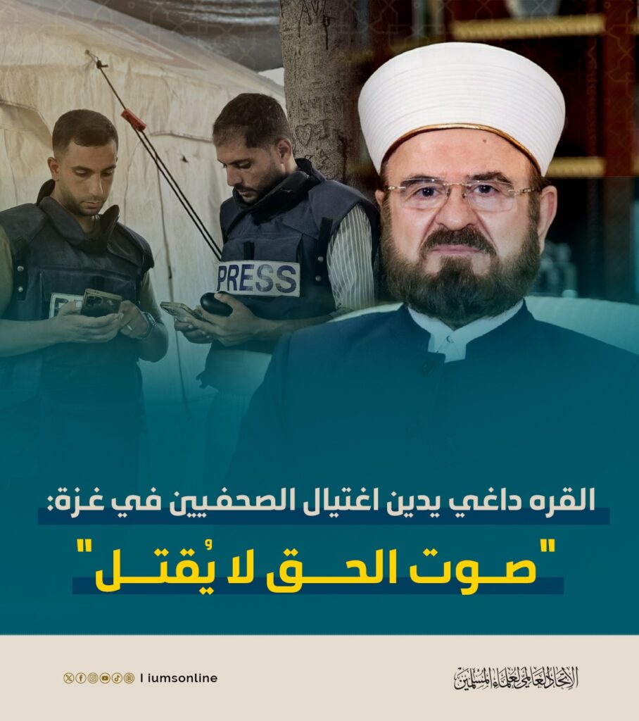 Al-Qaradaghi Condemns Assassination of Journalists in Gaza: “The Voice of Truth Cannot Be Silenced”