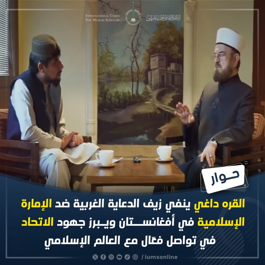 هیأتی از اتحادیه جهانی علمای مسلمان به ریاست دکتر علی قره داغی دبیرکل اخیراً از امارت اسلامی افغانستان دیدن کرد و سلسله جلسات و تماسهایی را با مقامات دولتی و علمای این امارت برقرار کرد.