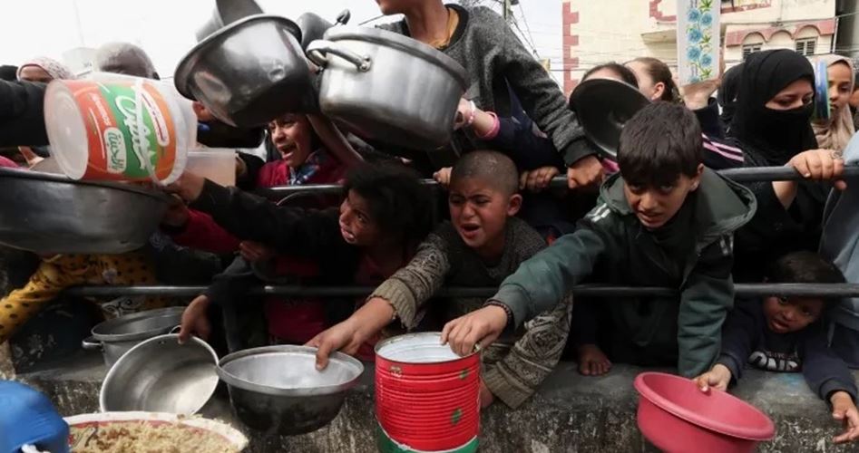 در اردوگاه جبالیا صدها نفر از آوارگان فلسطینی از جمله زنان و کودکان پیش از اذان مغرب در برابر یک دیگ بزرگ سوپ صف میکشند و امید دارند به یک وعده افطار مجانی دست پیدا کنند، این غذای ساده در یکی از مدارس آوارگان در اردوگاه جبالیا در شمال نوار غزه به آنها ارائه میشود.