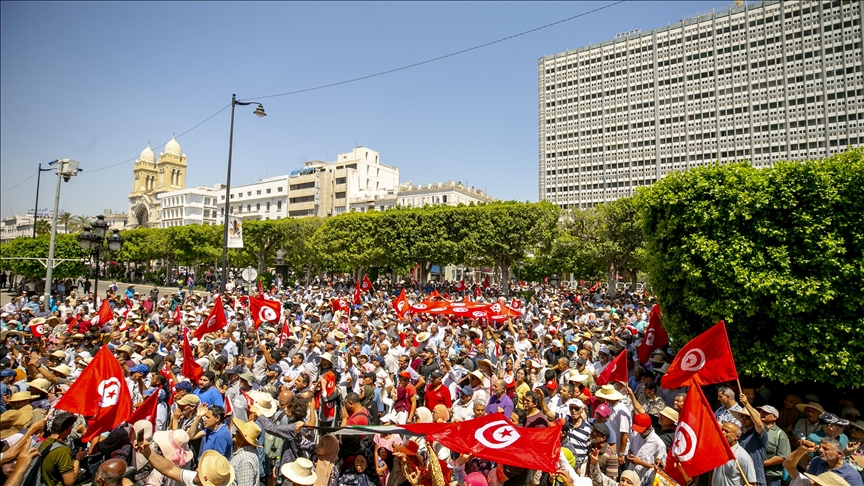 La marche, initiée par le “Front du Salut National”, a démarré de la Place de la République au centre de la capitale en direction de la rue Habib Bourguiba, où un rassemblement a été organisé.
