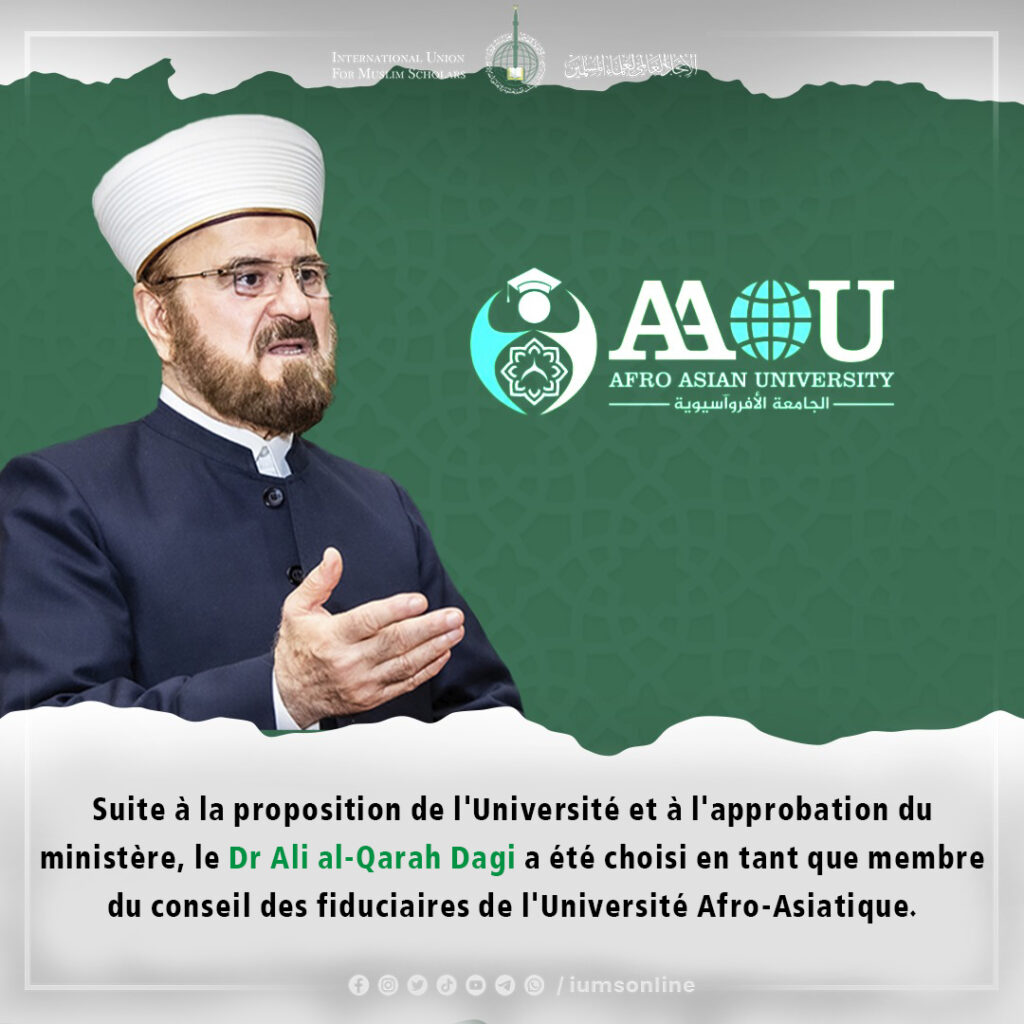 Suite à la proposition de l’Université et à l’approbation du ministère, le Dr Ali al-Qarah Dagi a été choisi en tant que membre du conseil des fiduciaires de l’Université Afro-Asiatique.