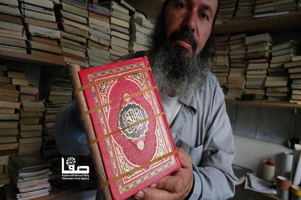 Le petit magasin situé au milieu du marché, dans le quartier Cheikh Rizwan de Gaza, est le magasin de Rafat Jabr, un Palestinien de 66 ans, qui restaure les couvertures et les feuilles des vieux Corans. Cet atelier est devenu la destination de ceux qui ne veulent pas que le livre de Dieu soit soumis au moindre outrage.