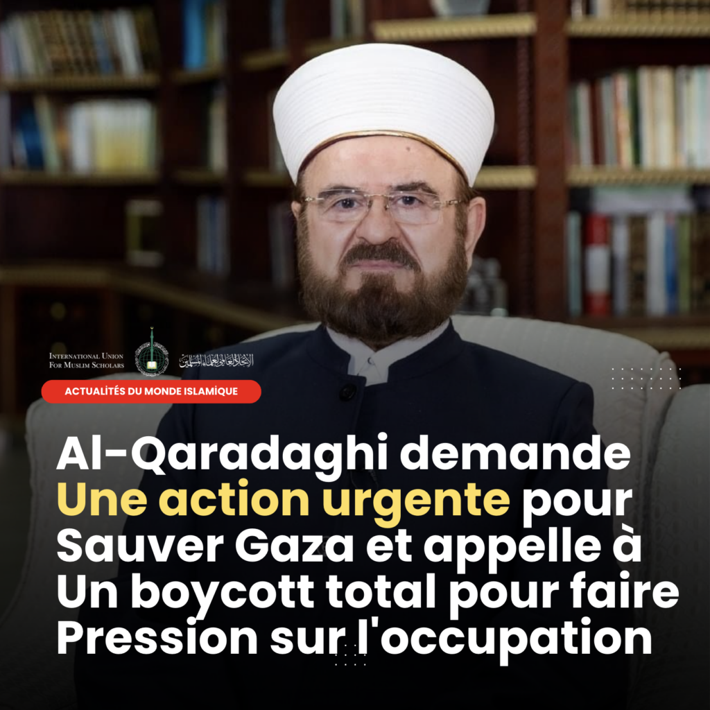 Al-Qaradaghi demande une action urgente pour sauver Gaza et appelle à un boycott total pour faire pression sur l’occupation