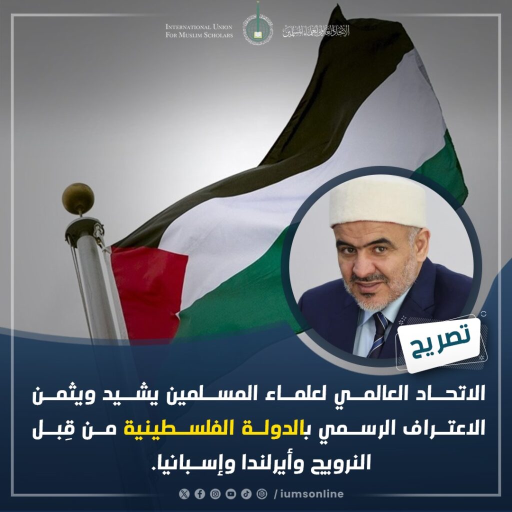 L’Union internationale des savants musulmans salue et apprécie la reconnaissance officielle de l’État palestinien par la Norvège, l’Irlande et l’Espagne.
