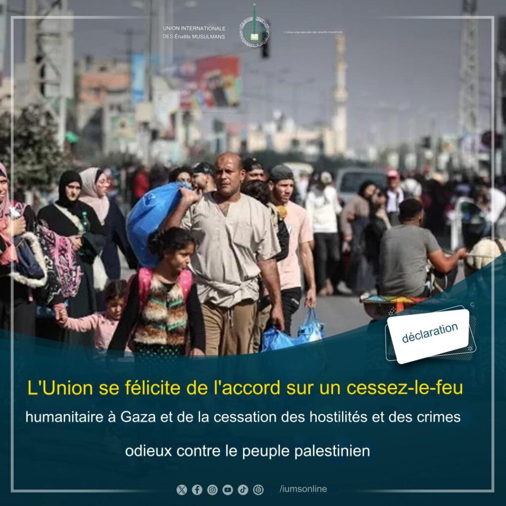 La Secrétariat général de l’Union internationale des savants musulmans se félicite de l’annonce parvenant à un accord de cessez-le-feu humanitaire dans la bande de Gaza