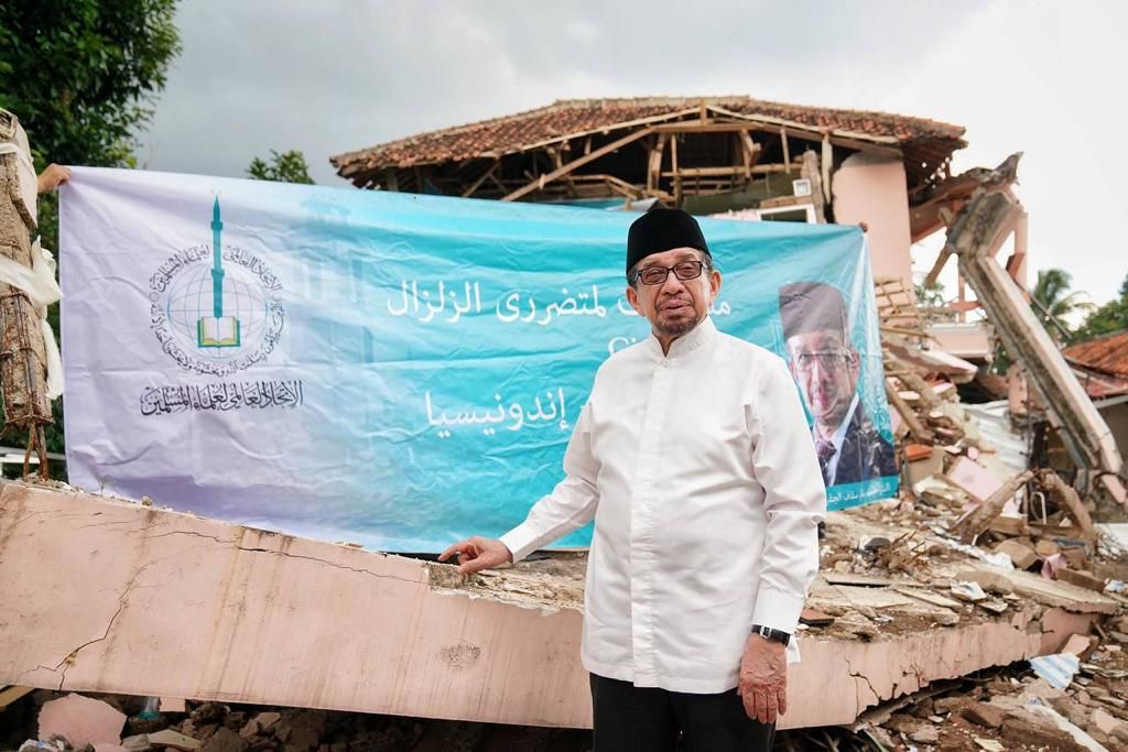 Визит президента Международного союза мусульманских ученых в район бедствия в Чианджур, ИндонезияNULL