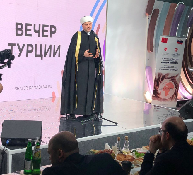 По приглашению Чрезвычайного и Полномочного Посла Турции в РФ г-на Мехмета Самсара первый заместитель председателя Совета муфтиев России, заместитель председателя Духовного управления мусульман РФ Рушан Аббясов принял участие в торжественном вечере Турецкой Республики, прошедшем в «Шатре Рамадана».
