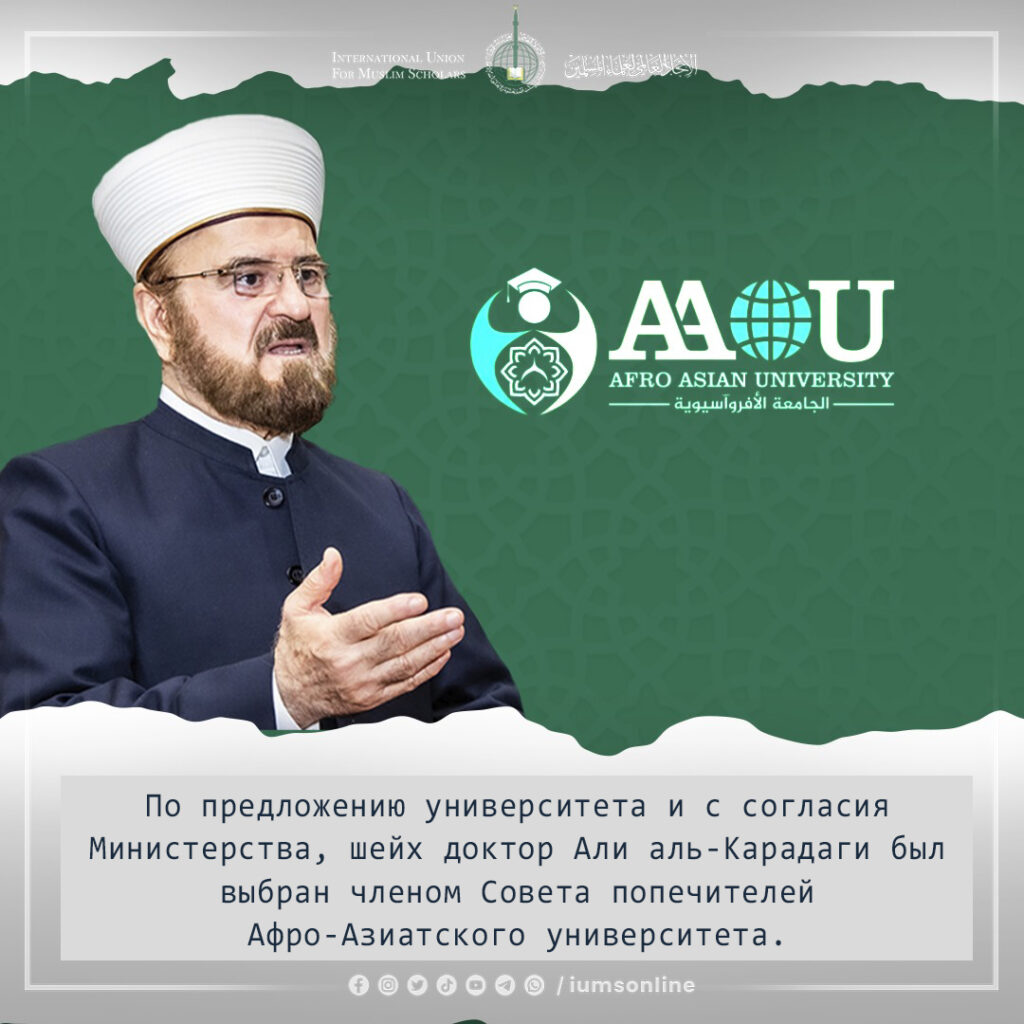 По предложению университета и с согласия Министерства, шейх доктор Али аль-Карадаги был выбран членом Совета попечителей Афро-Азиатского университета.