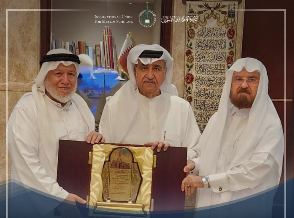 Доха: Достопочтенный шейх доктор Али аль-Карадаги, Генеральный секретарь Союза, в сопровождении доктора Марвана Абу Раса, председателя филиала Союза в Палестине, посетил уважаемого шейха Абдурахмана Алю Абдулгани.