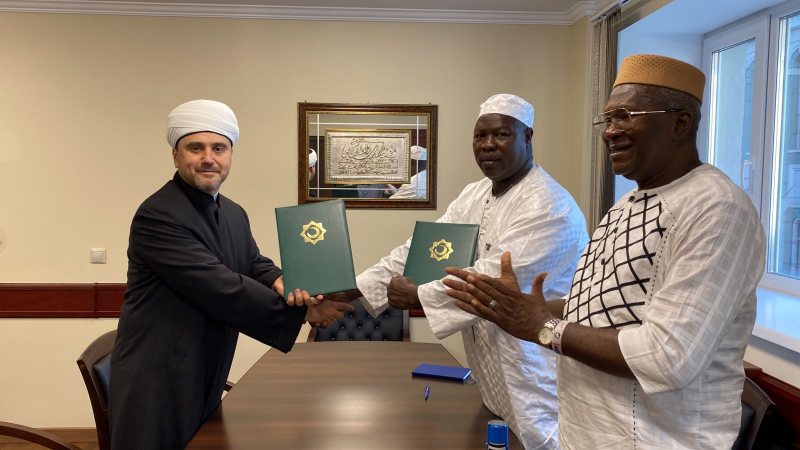 По благословению председателя Духовного управления мусульман РФ и Совета муфтиев России Муфтия Шейха Равиля Гайнутдина состоялось подписание Соглашения о сотрудничестве между ДУМ РФ, СМР и Федерацией исламских организаций Буркина-Фасо. Подписи под документом поставили первый зампред СМР, зампред ДУМ РФ Рушан Аббясов и вице-президент Федерации исламских организаций Буркина-Фасо г-н Абдулькарим Сана.