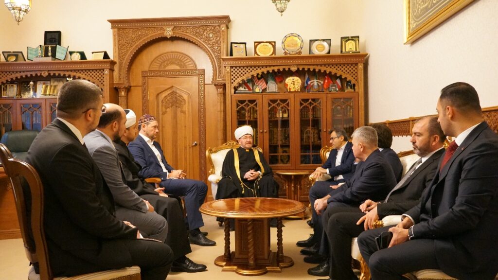 Председатель Духовного управления мусульман РФ и Совета муфтиев России Муфтий Шейх Равиль Гайнутдин встретился в своей резиденции в Московской Соборной мечети с Главой офиса по финансам при администрации Президента Турецкой Республики господином Гёкселем Ашаном и старшим вице-президентом Сбербанка Олегом Ганеевым