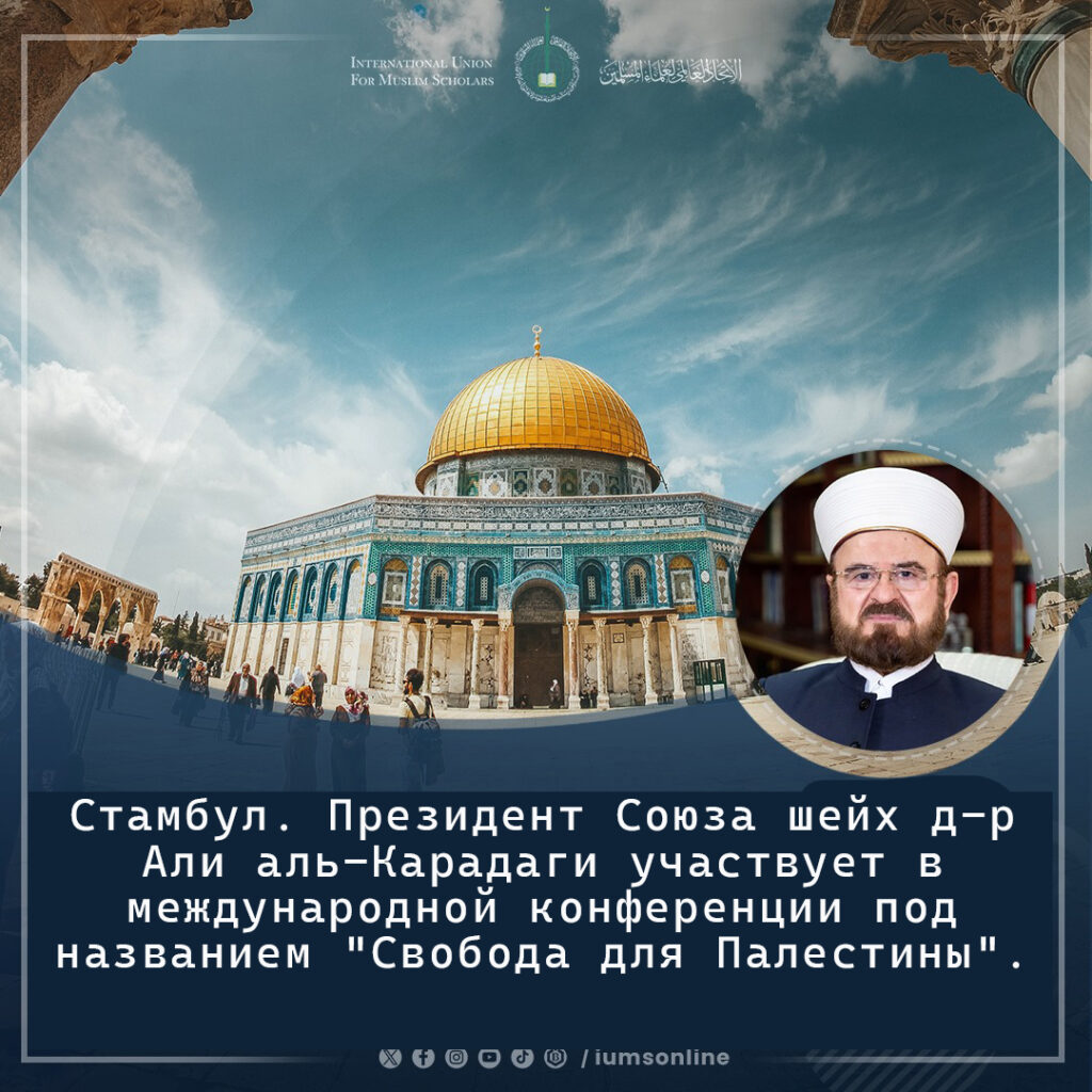 Стамбул. Президент Союза шейх д-р Али аль-Карадаги участвует в международной конференции под названием “Свобода для Палестины”.