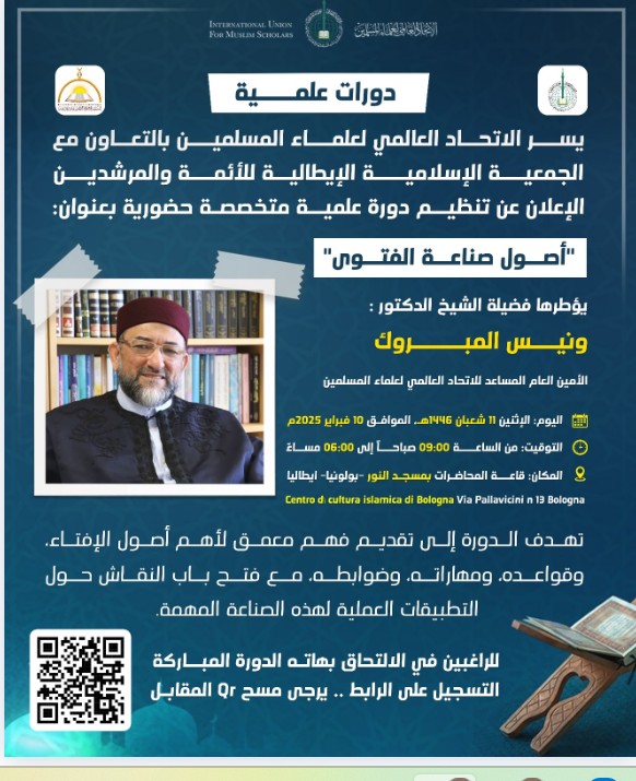 Всемирный союз мусульманских учёных в сотрудничестве с Итальянской исламской ассоциацией организует специализированный научный курс по основам вынесения фетв