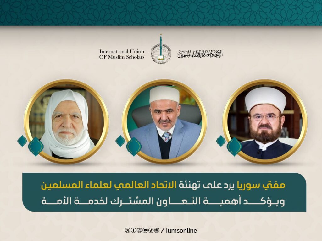Муфтий Сирии ответил на поздравление Международного союза мусульманских ученых и подчеркнул важность совместного сотрудничества на благо уммы