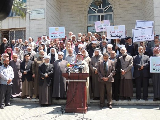 الاتحاد العالمي لعلماء فلسطين فرع فلسطين ورابطة علماء فلسطين يعقدان مؤتمراً صحفياً لبيان الحكم الشرعي بالتهديد بمزيد من الحصار على قطاع غزة