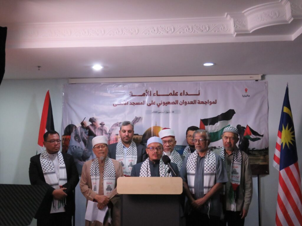 الاتحاد العالمي لعلماء المسلمين فرع ماليزيا بالتعاون مع مؤسسة القدس تعقد بيانا صحفيا احتجاجا على اقتحام اليهود للمسجد الأقصى.