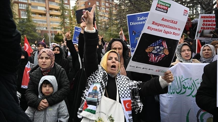 مظاهرات غاضبة في أنقرة وإسطنبول تنديدًا بدعم واشنطن لعدوان الاحتلال ورفضًا لتصريحات ترامب بشأن تهجير الفلسطينيين من غزة