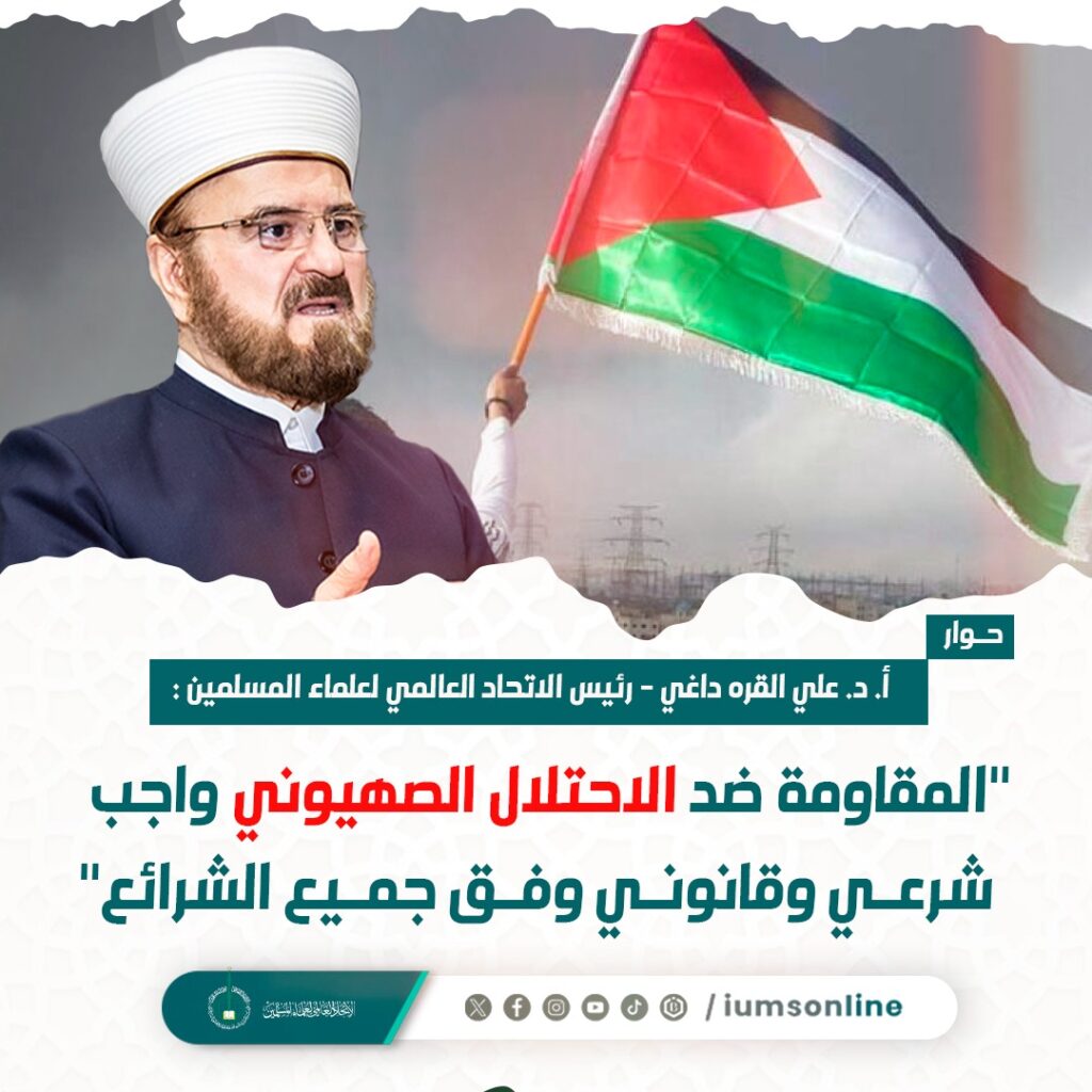 رئيس الاتحاد العالمي لعلماء المسلمين يؤكد: “المقاومة ضد الاحتلال الصهيوني واجب شرعي وقانوني وفق جميع الشرائع” (حوار)