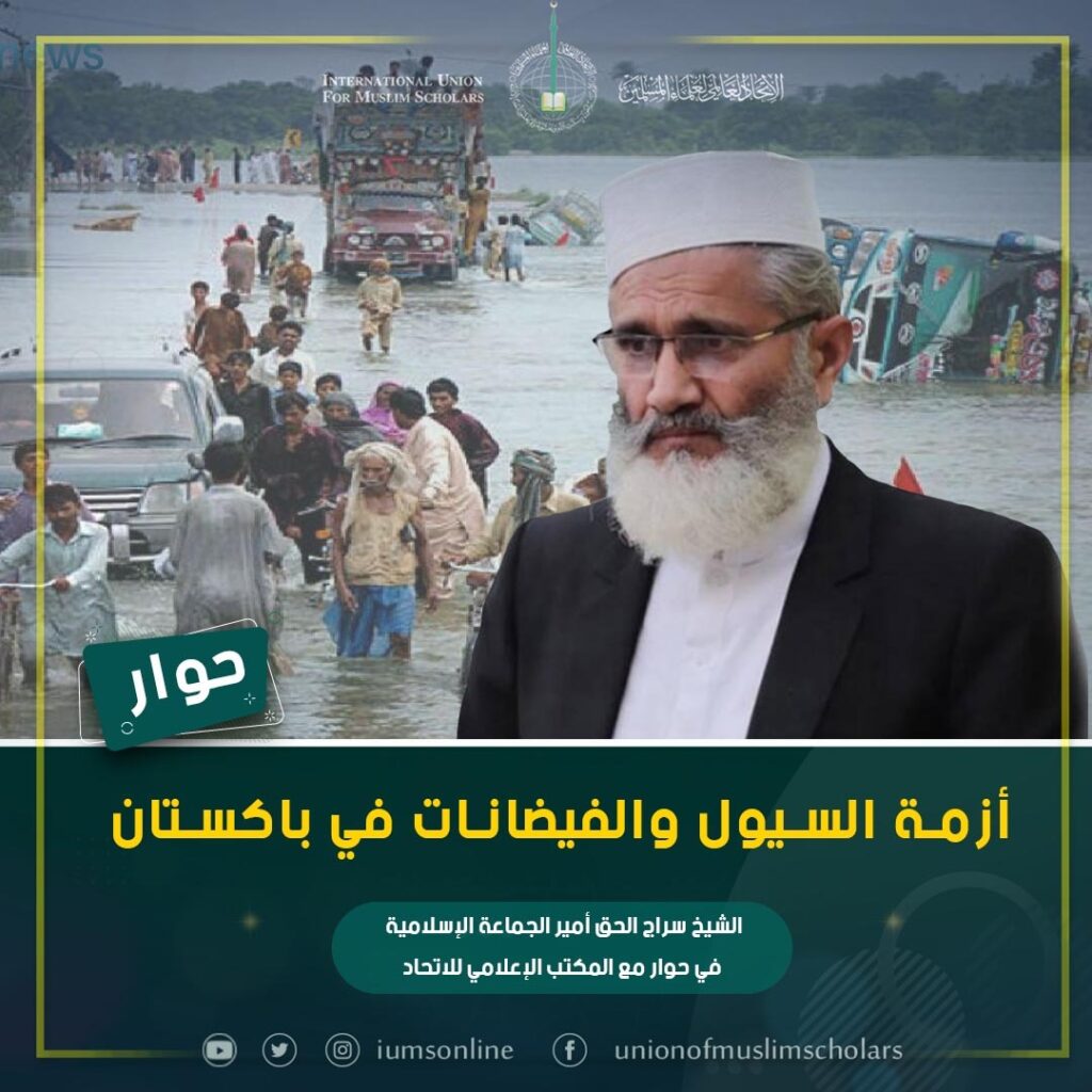حول أزمة الحوادث المرتبطة بالسيول والفيضانات في باكستان، الشيخ سراج الحق أمير الجماعة الإسلامية في حوار مع المكتب الإعلامي للاتحاد العالمي لعلماء المسلمين