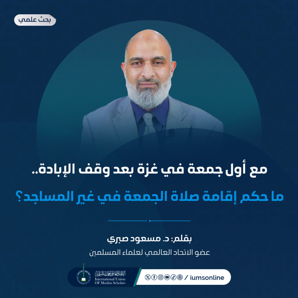 ما حكم إقامة صلاة الجمعة في غير المساجد؟د. مسعود صبريعضو الاتحاد العالمي لعلماء المسلمين صلاة الجمعة في غزة بعد الحربمع أول جمعة تقام في غزة بعد وقف الإبادة الجماعية التي…