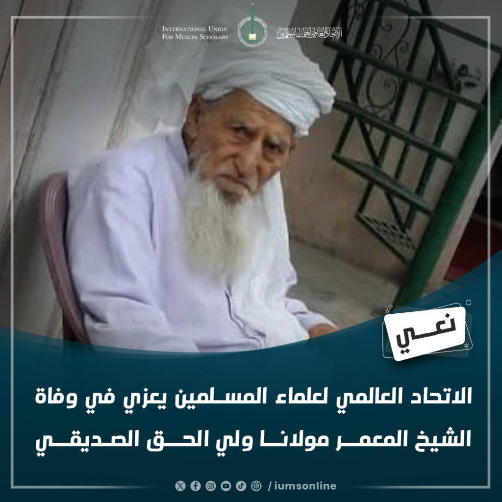 الاتحاد العالمي لعلماء المسلمين يعزي في وفاة الشيخ المعمر مولانا ولي الحق الصديقي