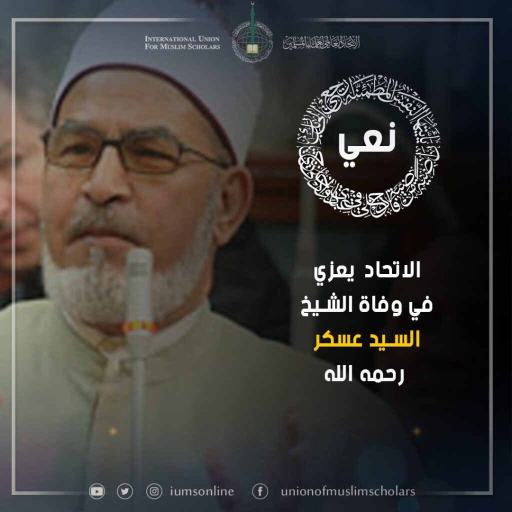 الاتحاد يعزي في وفاة فضيلة العالم والداعية الشيخ السيد عسكر، عن (89) عاما، قضى جُلها في خدمة التعليم والعلم والعمل الدعوي والإفتاء والتربية