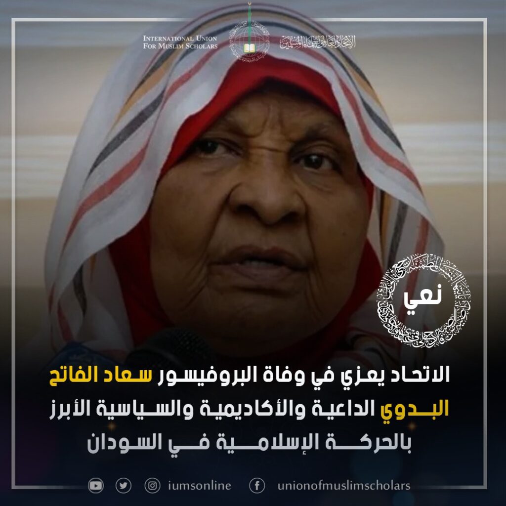 الاتحاد العالمي لعلماء المسلمين يعزي في وفاة البروفيسور سعاد الفاتح البدوي الداعية والأكاديمية والسياسية الأبرز بالحركة الإسلامية في السودان
