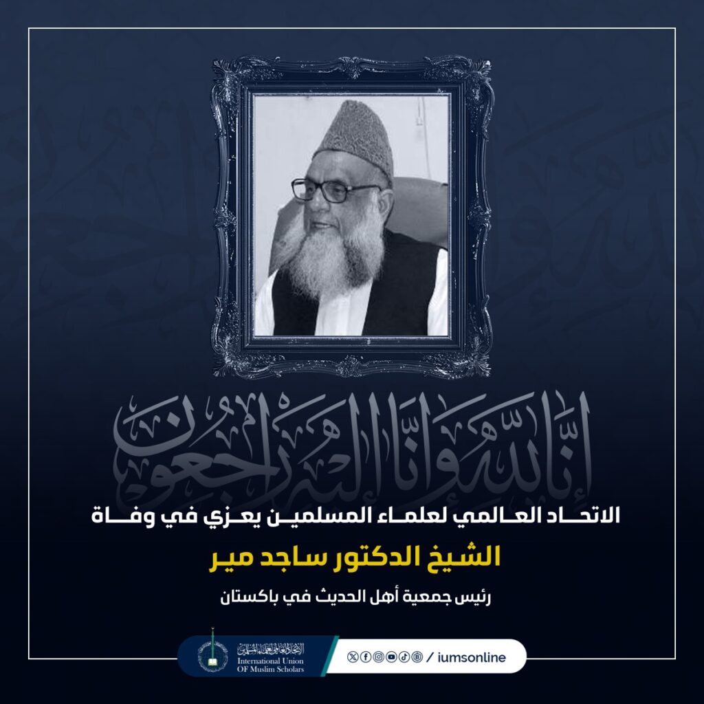 الاتحاد العالمي لعلماء المسلمين يعزّي في وفاة الشيخ الدكتور ساجد مير، رئيس جمعية أهل الحديث المركزية بباكستان وأحد رموز العلم والدعوة