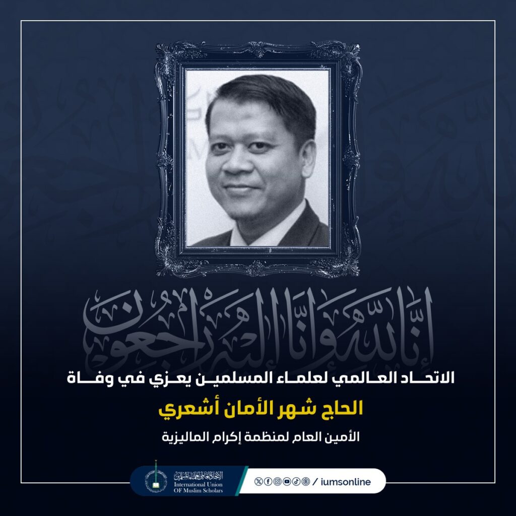 الاتحاد العالمي لعلماء المسلمين يعزي في وفاة الحاج شهر الأمان أشعري الأمين العام لمنظمة إكرام الماليزية