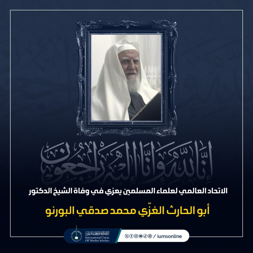 الاتحاد العالمي لعلماء المسلمين يعزي في وفاة الشيخ الدكتور أبو الحارث الغزّي محمد صدقي البورنو