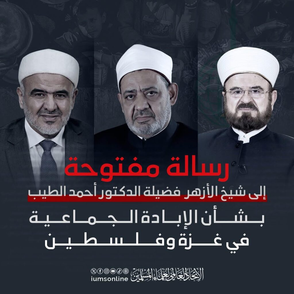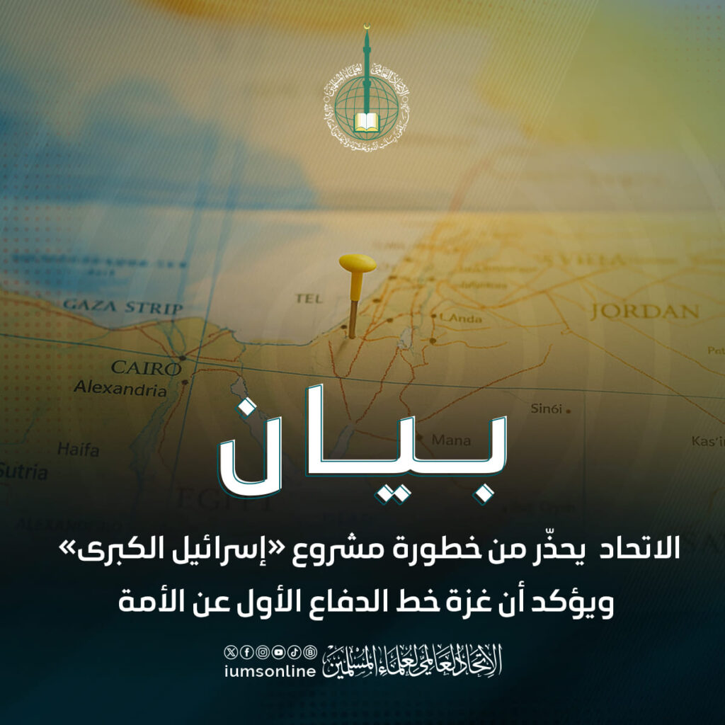 الاتحاد العالمي لعلماء المسلمين يحذّر من خطورة مشروع «إسرائيل الكبرى» ويؤكد: أن سقوط غزة خطر داهم على الأمة، وأن وحدتها هي السبيل للحماية (بيان)