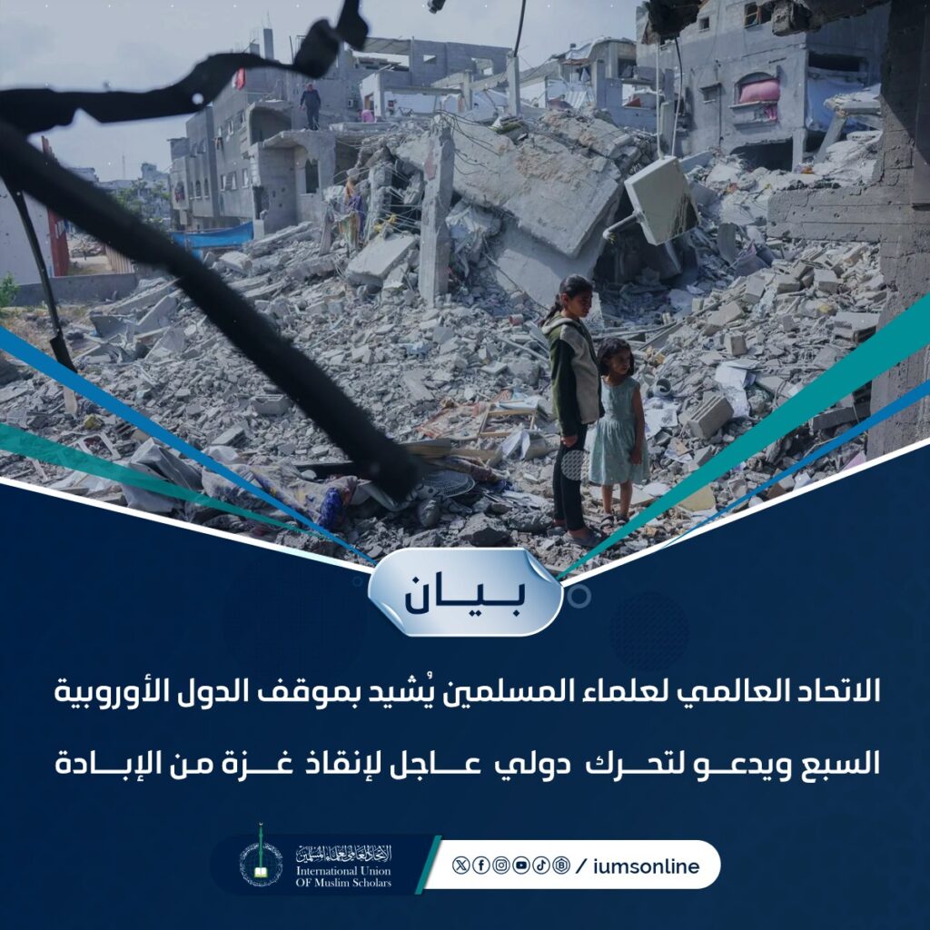 الاتحاد العالمي لعلماء المسلمين يُشيد بموقف الدول الأوروبية السبع ويدعو لتحرك دولي عاجل لإنقاذ غزة من الإبادة