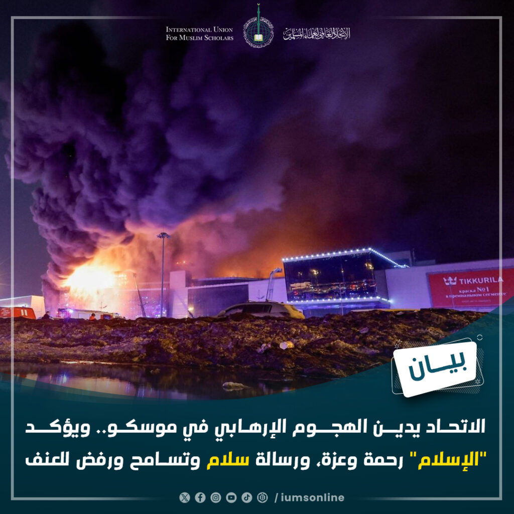 الاتحاد العالمي لعلماء المسلمين يدين الهجوم الإرهابي في موسكو.. ويؤكد “الإسلام” رحمة وعزة، ورسالة سلام وتسامح ورفض للعنف