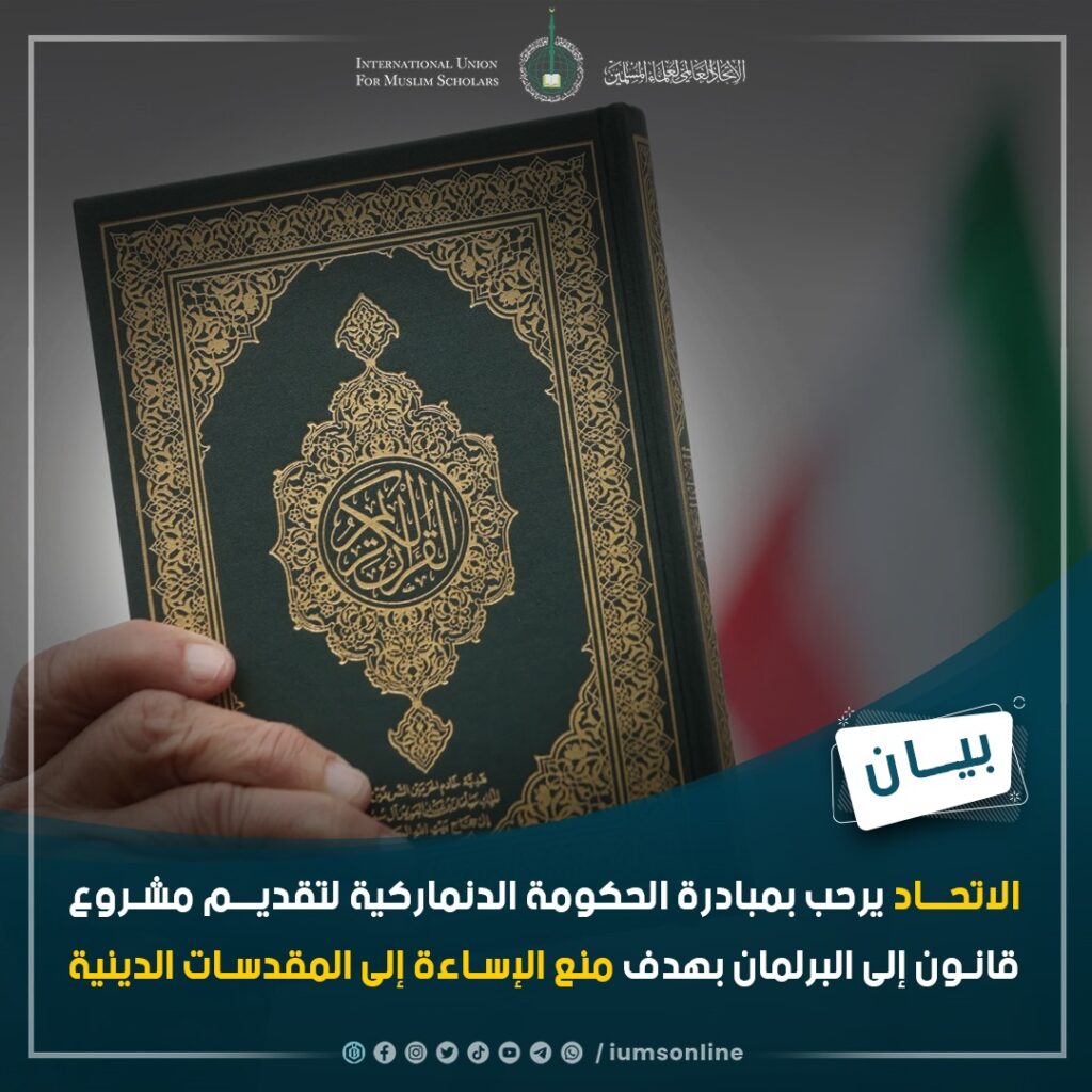 الاتحاد العالمي لعلماء المسلمين يُرحب بمبادرة الحكومة الدنماركية لتقديم مشروع قانون إلى البرلمان بهدف منع الإساءة إلى المقدسات الدينية لدى الناس