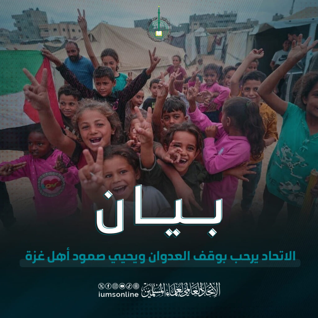 بيان حول وقف الحرب والعدوان على غزةالاتحاد العالمي لعلماء المسلمين يرحب بوقف العدوان شاكرا كل من أسهم فيه، ومقدرا ومعتزا بما قدمه أهل غزة العزة من الصبر والثبات .