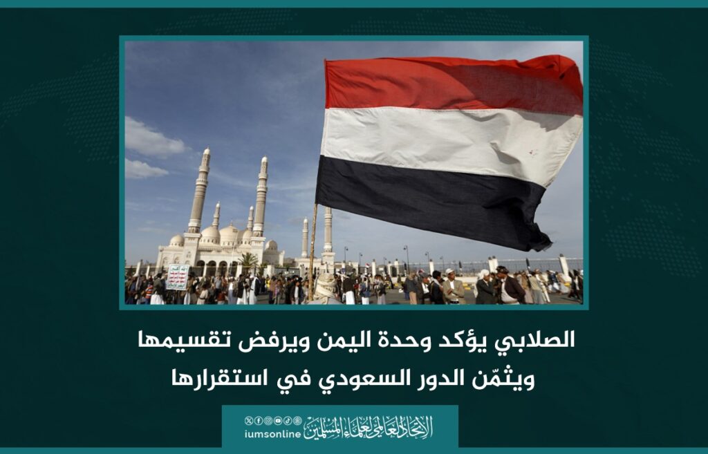 الصلابي يؤكد وحدة اليمن ويرفض تقسيمها ويثمّن الدور السعودي في استقرارها (تصريح)