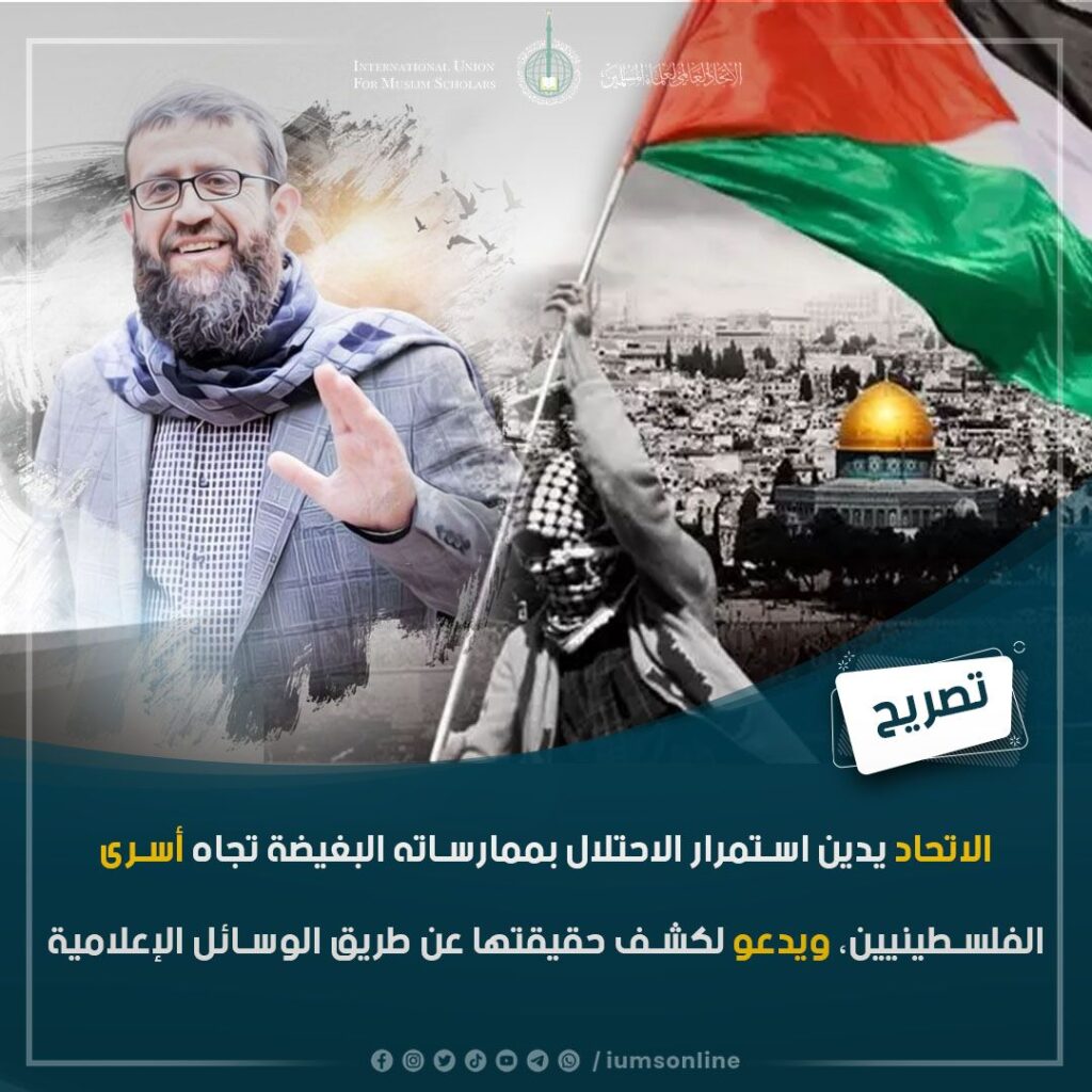 الاتحاد يدين بشدة الممارسات البغيض التي يقوم بها الاحتلال الإسرائيلي تجاه الأسرى الفلسطينيين، وآخرها كان استشهاد القيادي في حركة الجهاد الإسلامي الفلسطينية الشيخ خضر عدنان في سجون الاحتلال ، ويدعو الجميع إلى كشف حقيقة هذه الممارسات اليومية عن طريق القنوات الواقعية ووسائل الإعلام