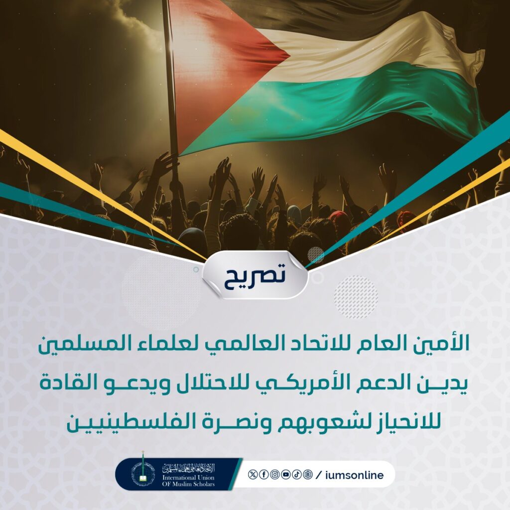 الأمين العام للاتحاد العالمي لعلماء المسلمين يدين الدعم الأمريكي للاحتلال ويدعو القادة للانحياز لشعوبهم ونصرة الفلسطينيين (تصريح)