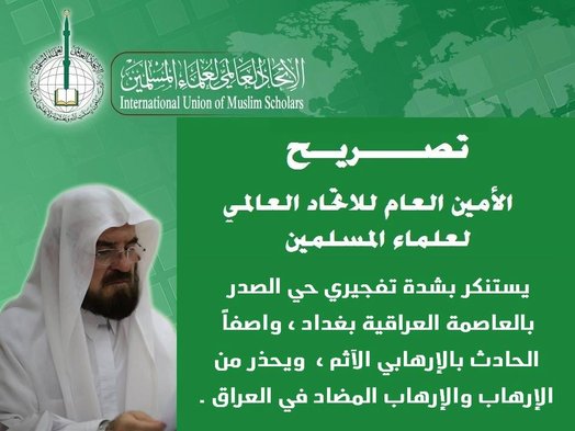 القره داغي يستنكر بشدة تفجيرات بغداد ويحذّر من الإرهاب والإرهاب المضاد