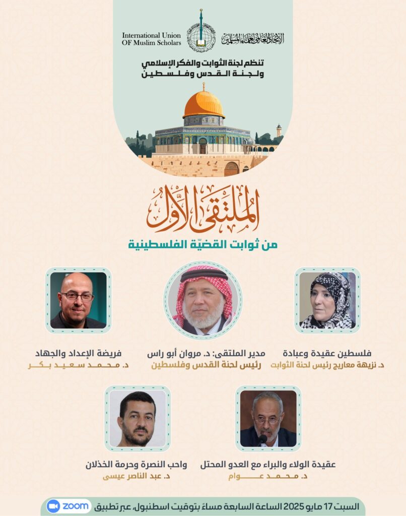 الاتحاد العالمي لعلماء المسلمين ينظم غدًا ملتقى “من ثوابت القضية الفلسطينية” بمشاركة نخبة من العلماء